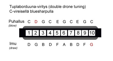 Tuplaborduuna-viritys on kehittämäni viritys, joka mahdollistaa borduunasoitossa kahden eri borduunasävelen käytön melodiaa säestämään. Siinä viritetään 2-reiän puhallusääni kokosävelaskel alaspäin. Viritykseen on mahdollista lisätä myös korkea borduuna virittämällä 10-reiän imusävel kokosävelaskel matalammaksi. Tätä viritystä voi kokeilla “turvallisesti” kiinnittämällä pieni pala sinitarraa madallettaviin kieliin, kunnes vire on haluttu.
